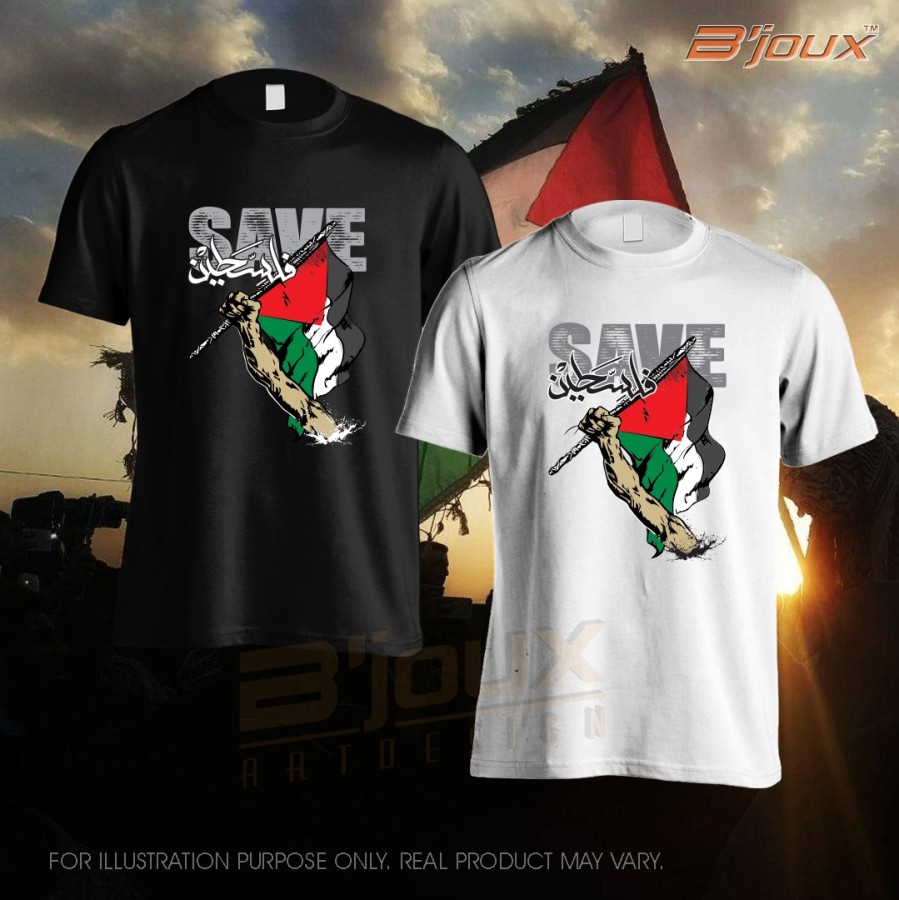 D. Baju Tshirt Roundneck Microfibre SAVE PALESTIN White Design 2